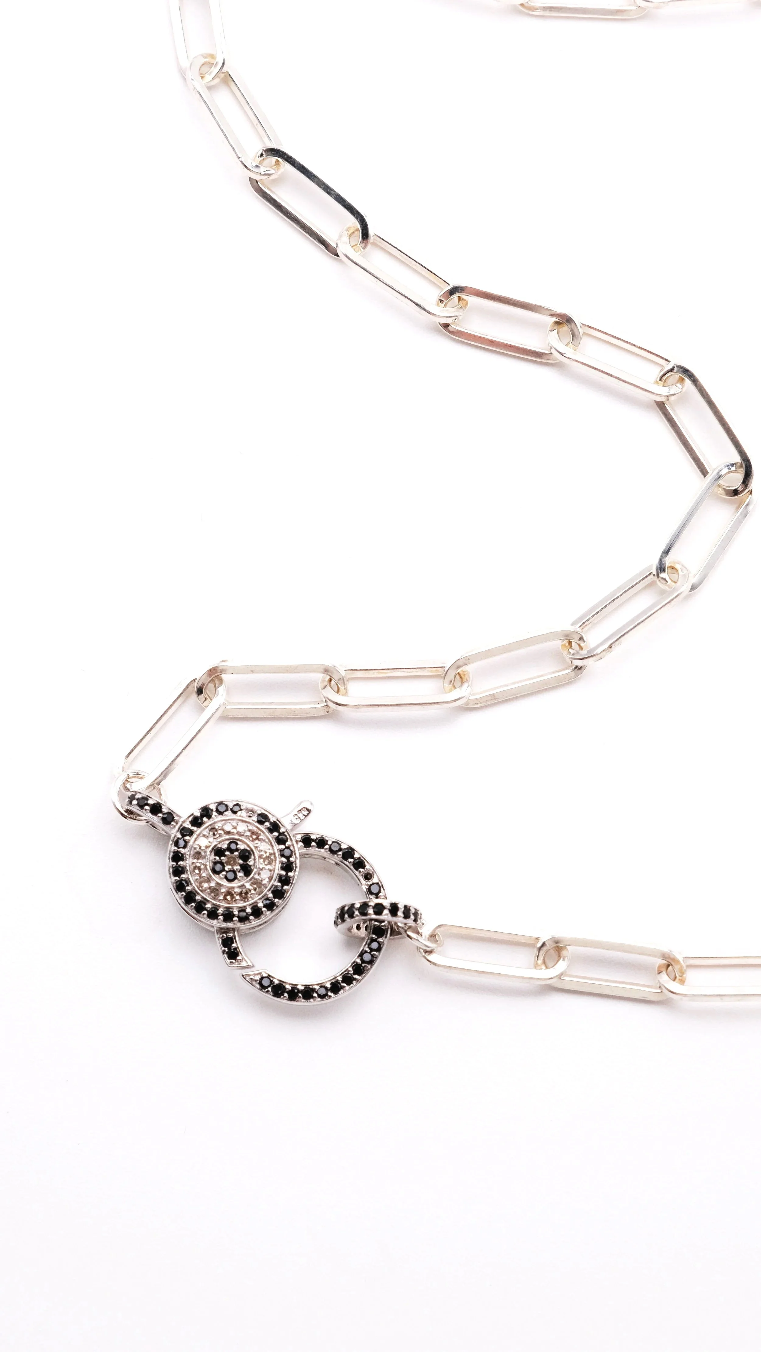 Our gorgeous sterling paper clip chain ends in sparkly diamonds and black spinel!