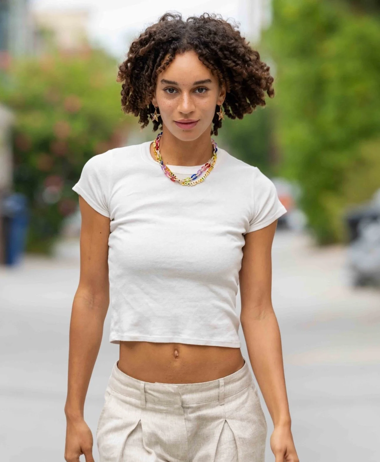 This dainty little stacker packs a punch and elevates anything you stack with it!