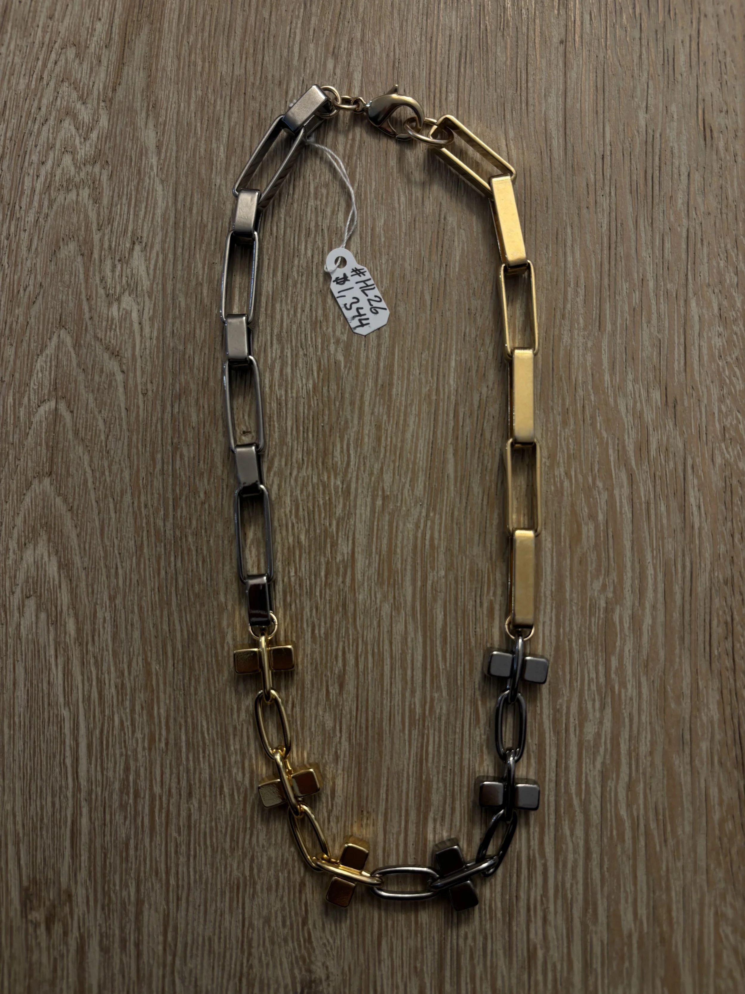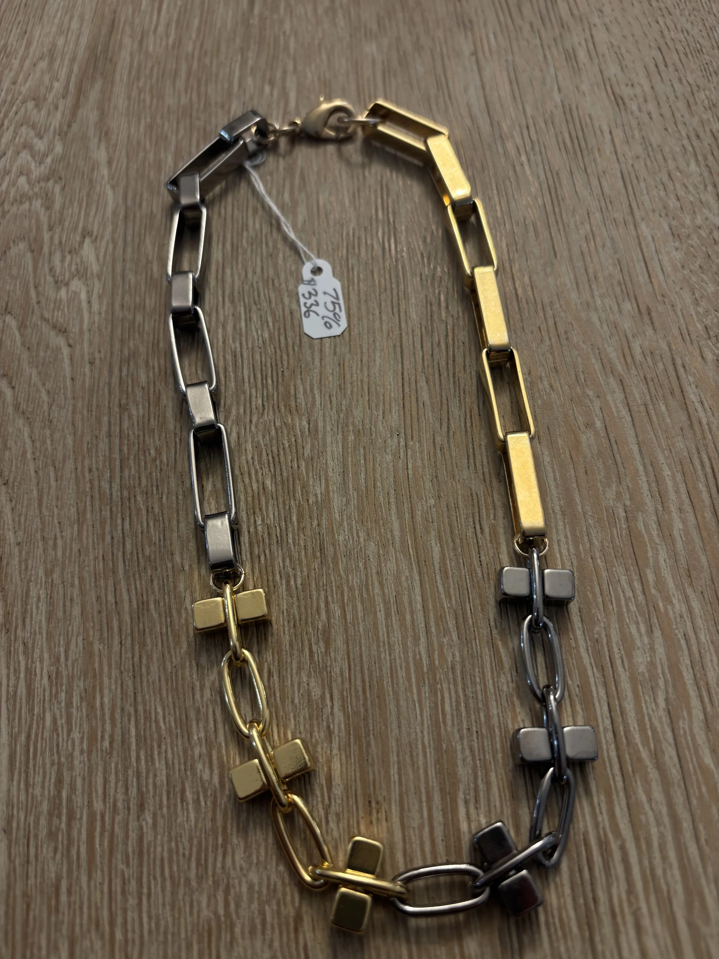 14k gold overlay chain with black onyx connector with emerald, ruby and pavé diamonds