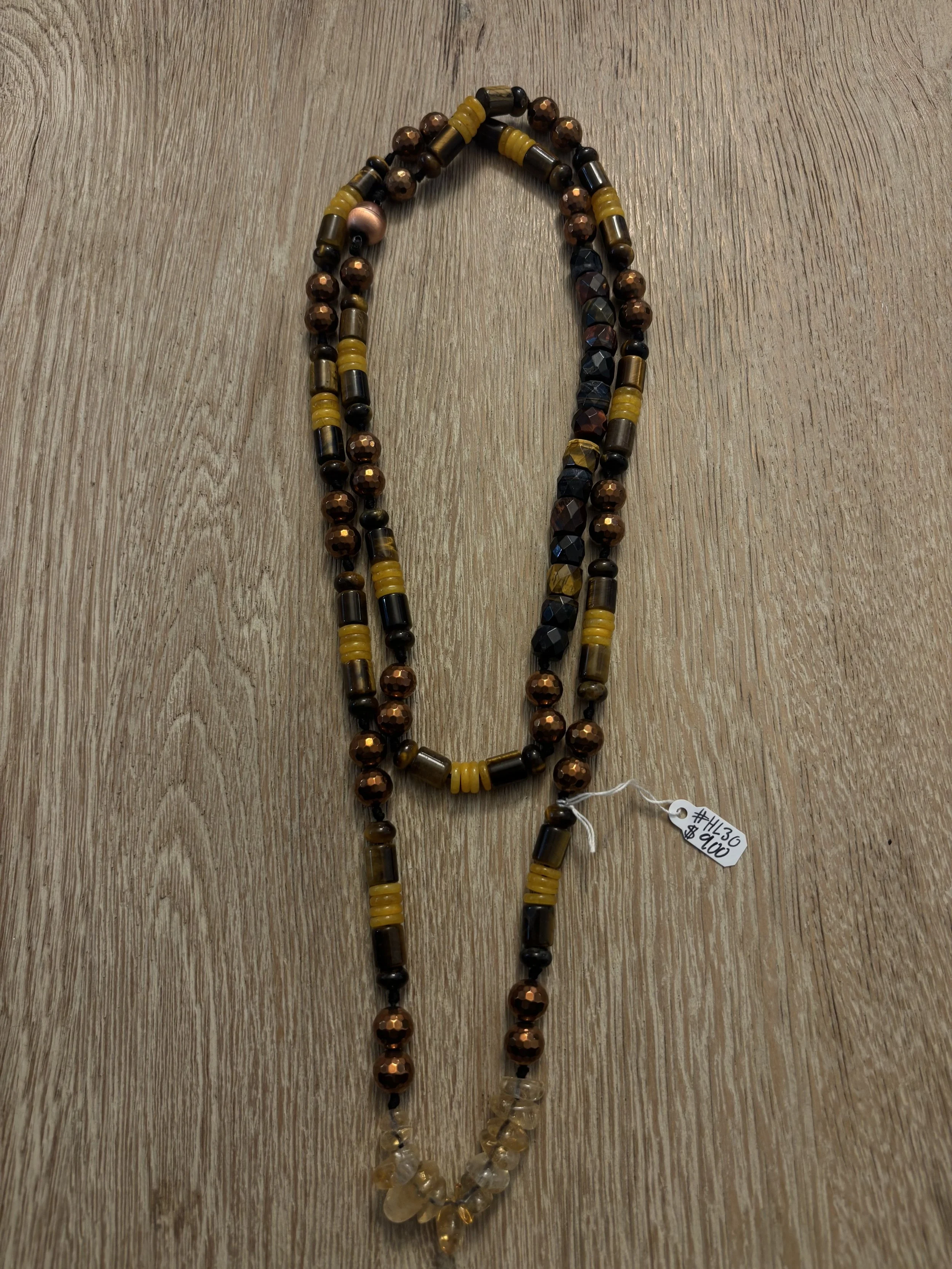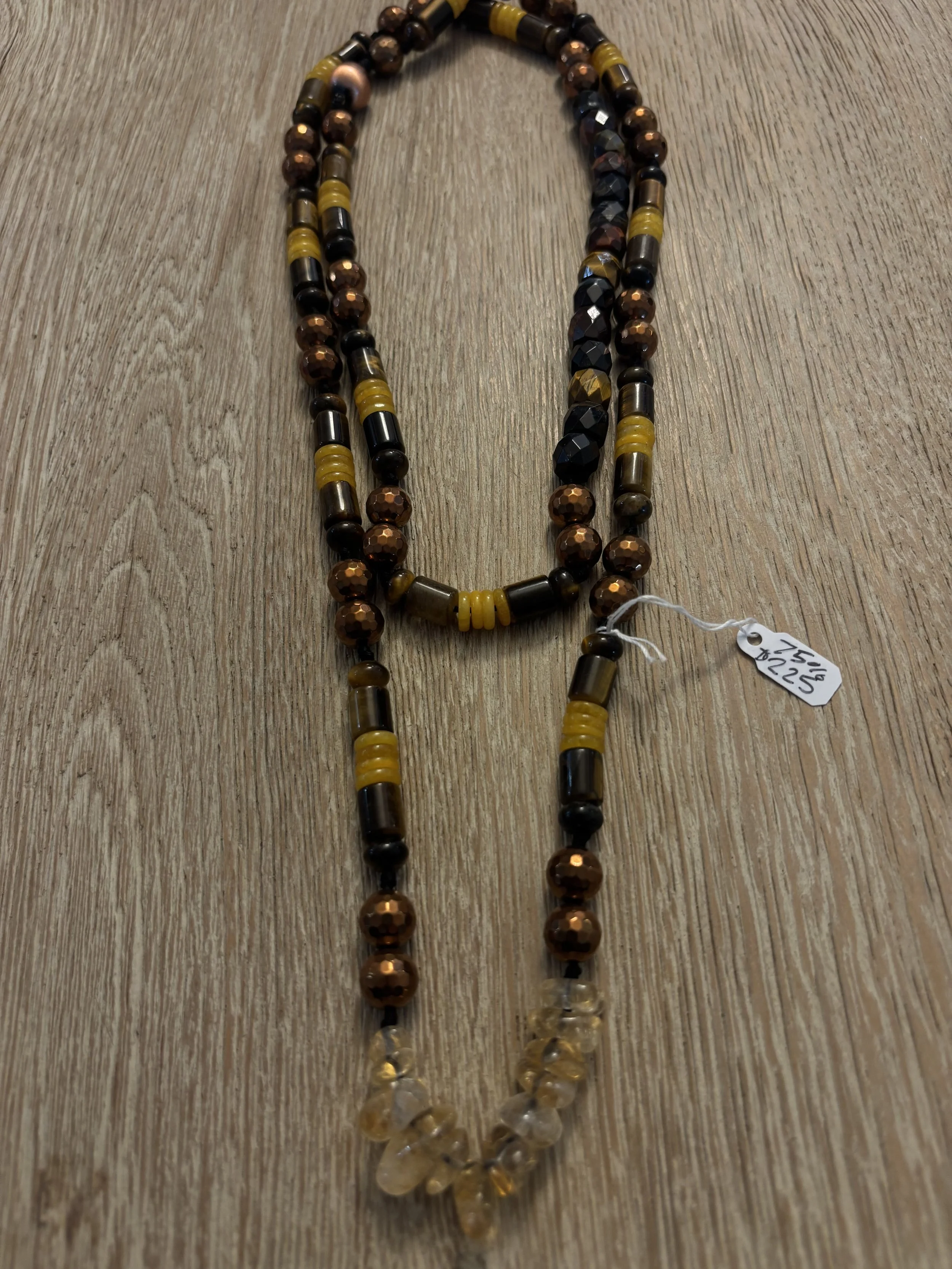 Clear quartz, pyrite, and black onyx on a sterling silver chain