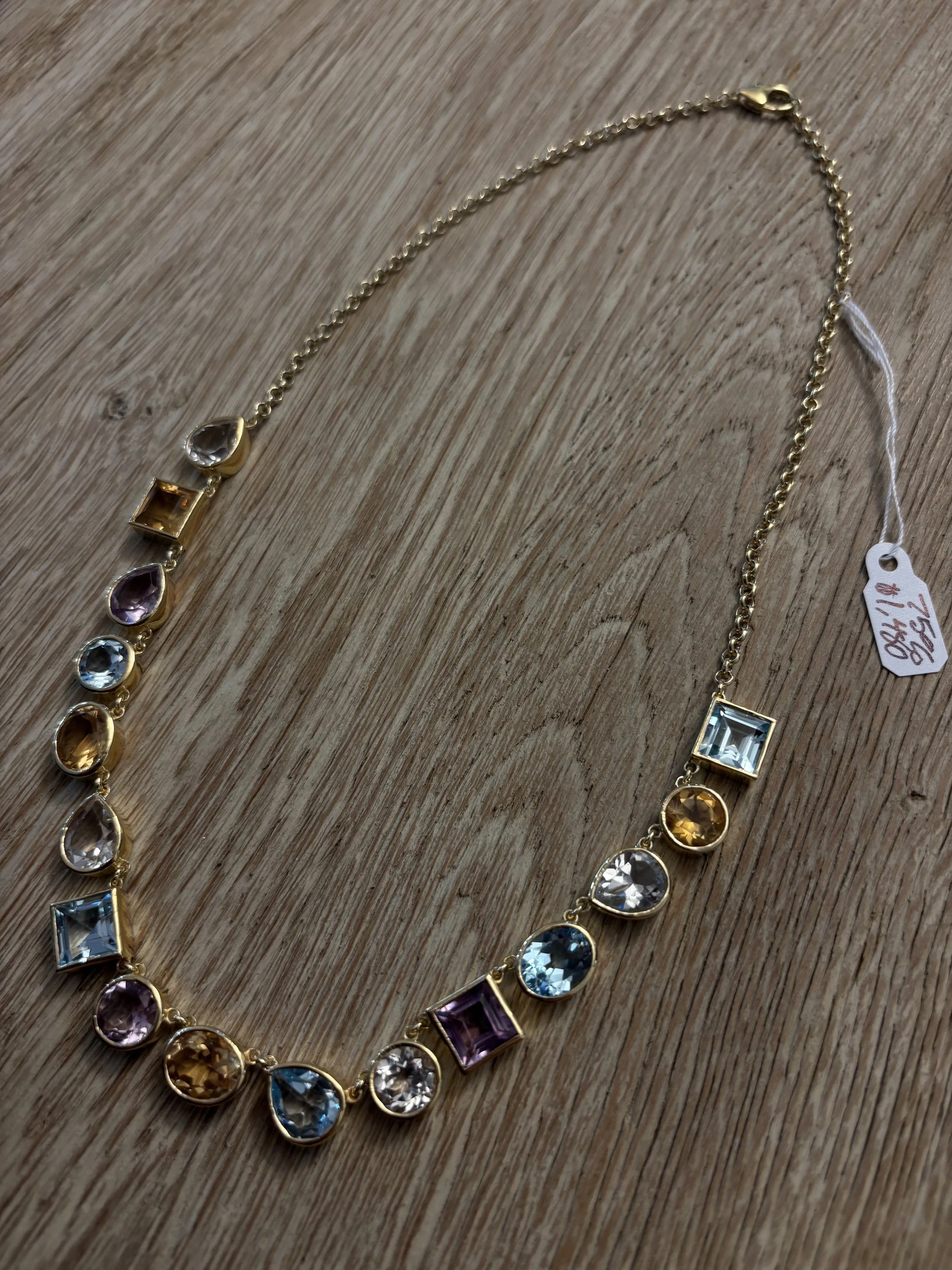 14k gold vermeil, diamonds, and turquoise enamel butterfly pendant, 16” long
