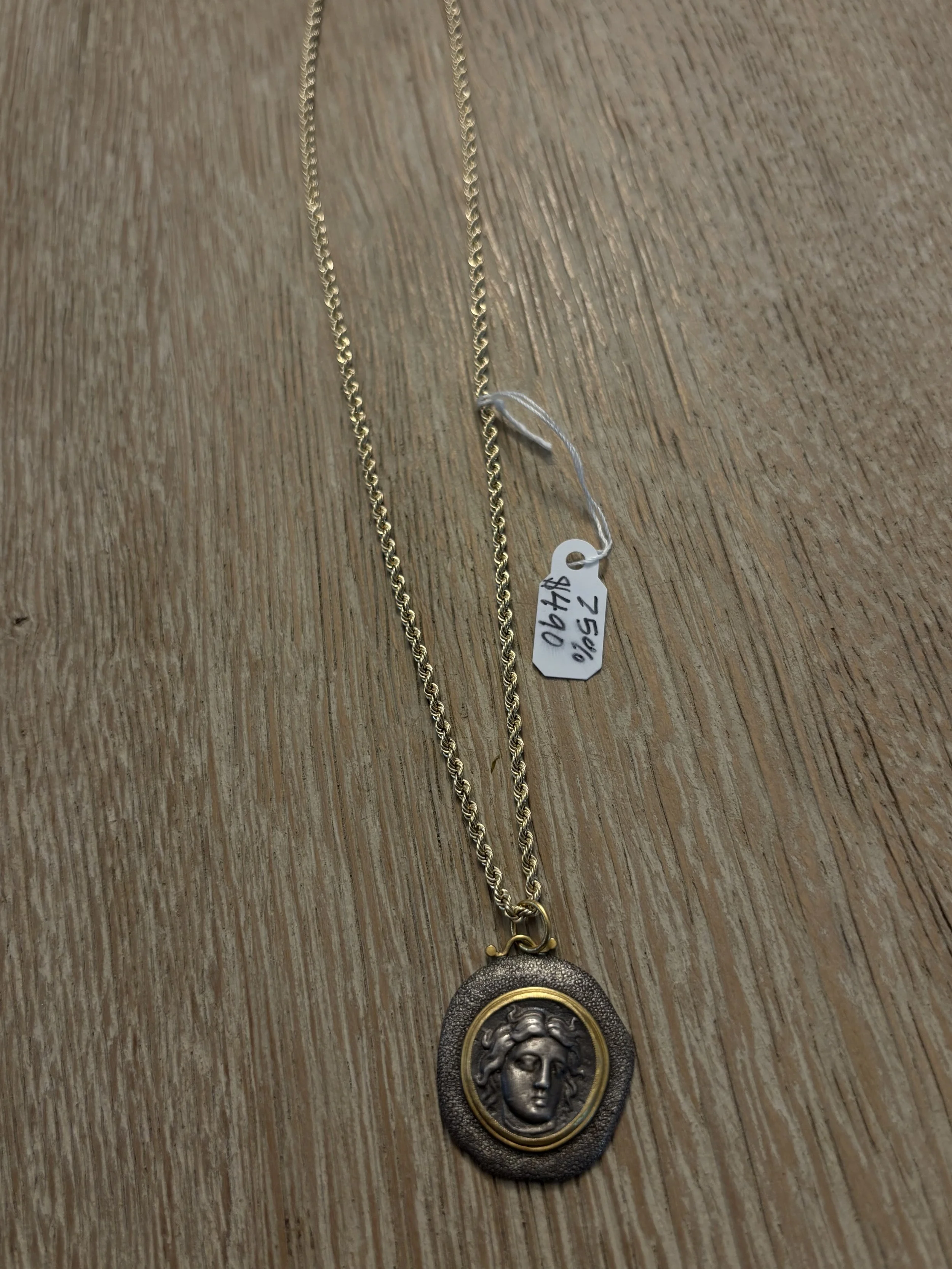 14k gold, diamond, and lab-grown opal charm on an 18” 14k gold chain.