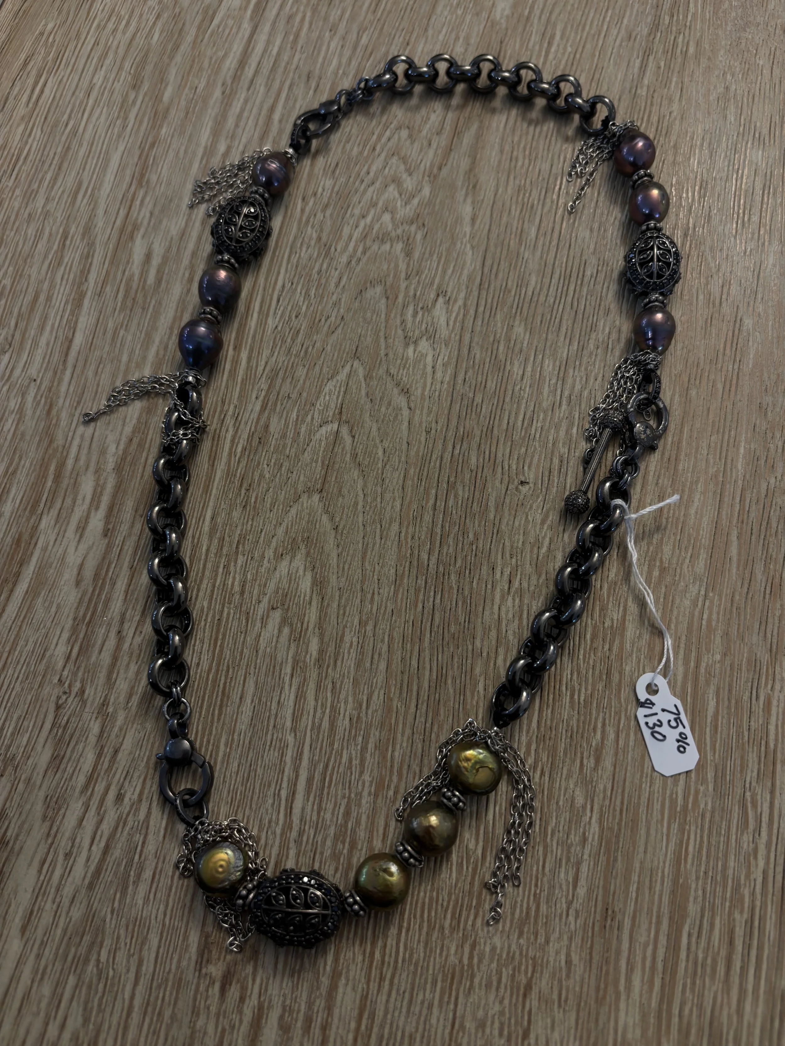 White enamel and 14k gold plated chain with white enamel circle lock, and 14k gold vermeil, white enamel, and diamond crescent moon charm. Chain 21” long